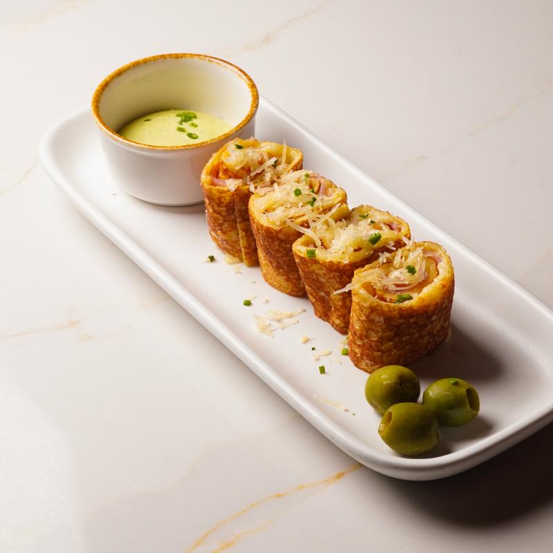 classic ham & gruyère with mayo, garnished with chive aioli, olives, & grated cheese